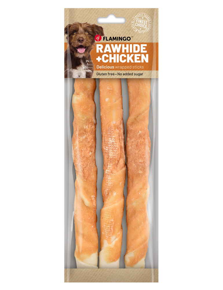 Flamingo Feinschmecker Kaustangen mit Huhn. Ein herrlicher Leckerbissen für Ihren Hund. Als Belohnung oder kleine Zwischenmahlzeit.