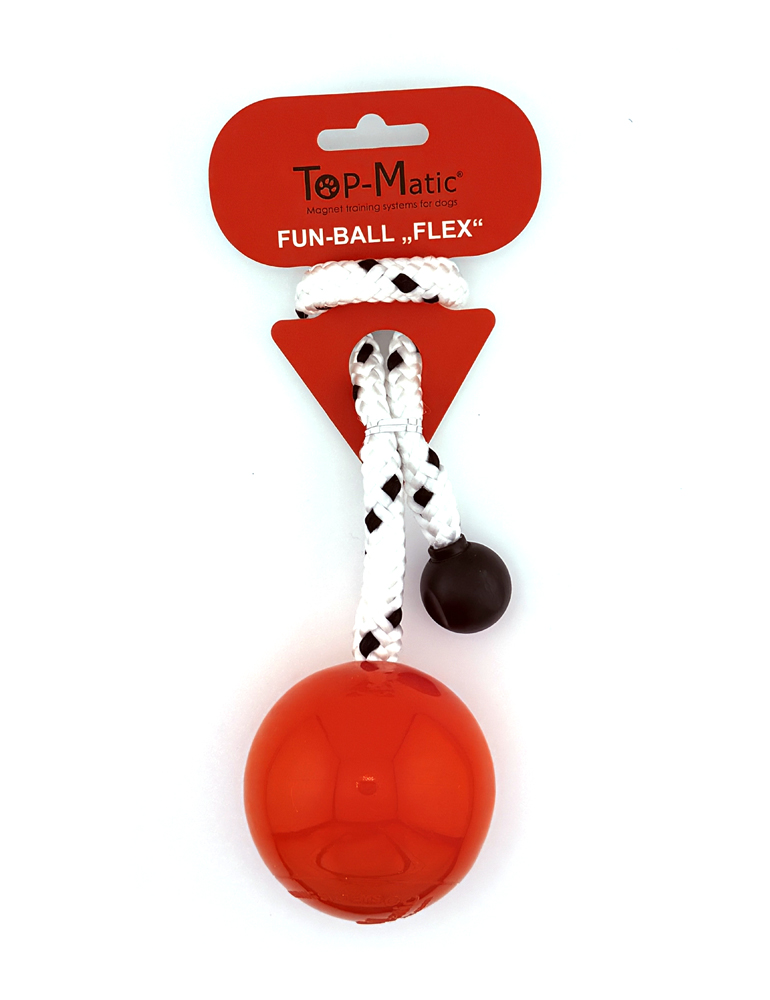 Top-Matic "Fun-Ball FLEX" mit Schnur, für die Aktivierung mit Hörzeichen, in Verbindung mit Triebförderung mittels Zerrspiel für den Hund.