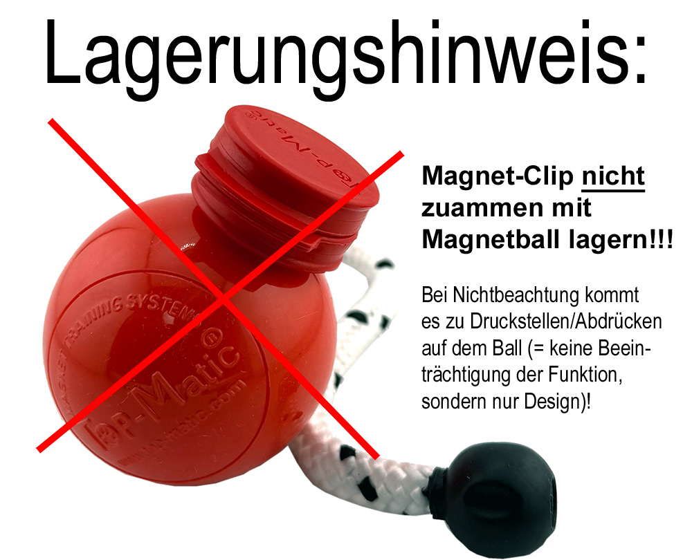 ACHTUNG: Lagern Sie den Fun-Ball FLEX nicht im zusammengefügten Zustand mit dem Magnetclip!!! Ansonsten kann es zu Druckstellen/Abdrücken auf dem Fun-Ball FLEX kommen (Funktionsweise wird nicht beeinträchtigt).